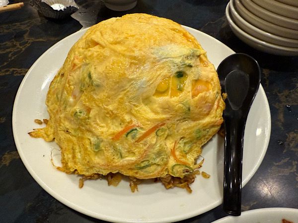 こちらのお店の名物です。天津カレー焼き飯大盛り(1050円)。 フォルムがかわいい。ものすっごい大きさです。これを5人で食べましたが、もしかしたら一人でもいけるかもってくらい本当においしいんです!