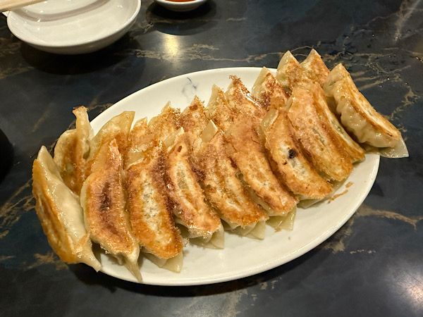 たっくさん頼んだので一気にご紹介していきます。 焼きギョーザ。1人前なんと10個!「うちのは小さいから」と言われますが全然!充分な大きさです。そしてかなりおいしいです。あっさりめなので何個でも食べられます。
