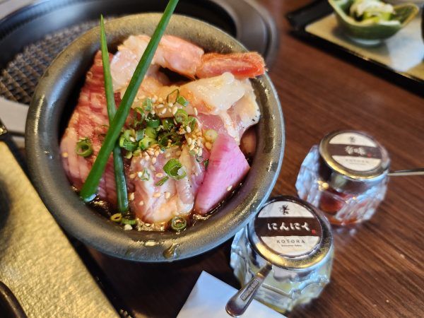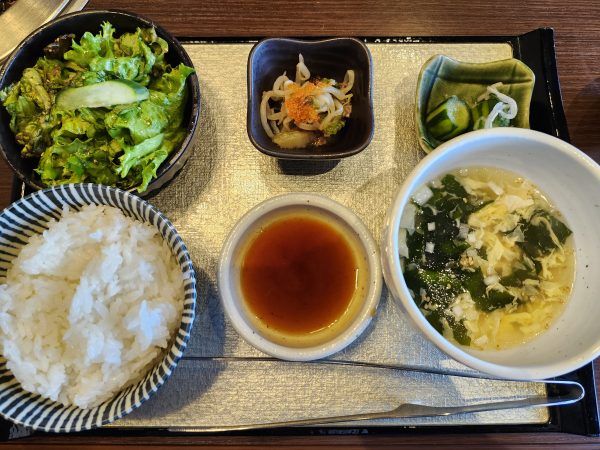 こちらのランチは小鉢、キムチ、サラダ、スープ、ライス付き。 サラダやキムチが冷え冷えで嬉しいです。この日の小鉢は、とびっこがのった「自家製牛しぐれのナムル」。米沢牛のあまりの美味しさに「これは何ですか?」と店員さんに聞いてしまいました。