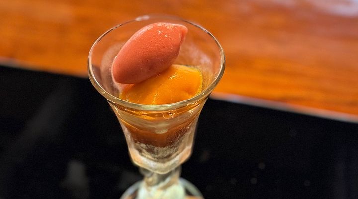 とちあいか苺とアンポンオレンジ(伊豆産)の氷菓 小豆の甘酒煮