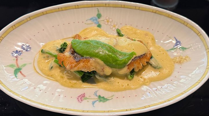 越前港から「アナゴ」のヴァプール 小松菜の菜花とその餡添え
