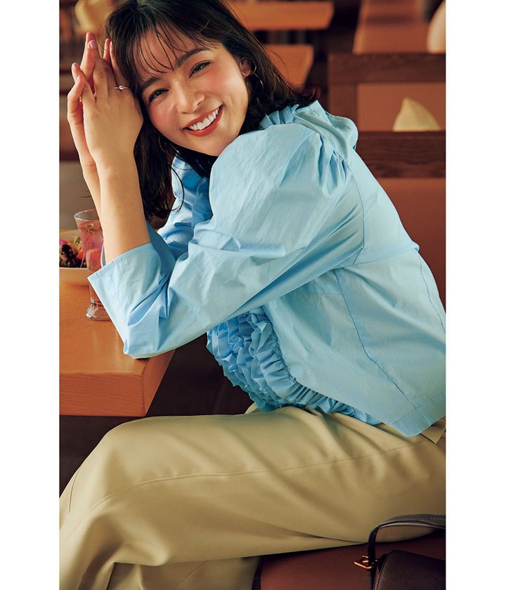 「16歳のデビュー当時、これと言った取り柄も趣味もなかった中、唯一プロフィールに書けたのが『好きな色=イエロー』。専門家の方に『ブルーが似合う』と言っていただいたこともあり、ブルー×イエローは私にとって特別感のある配色です」。