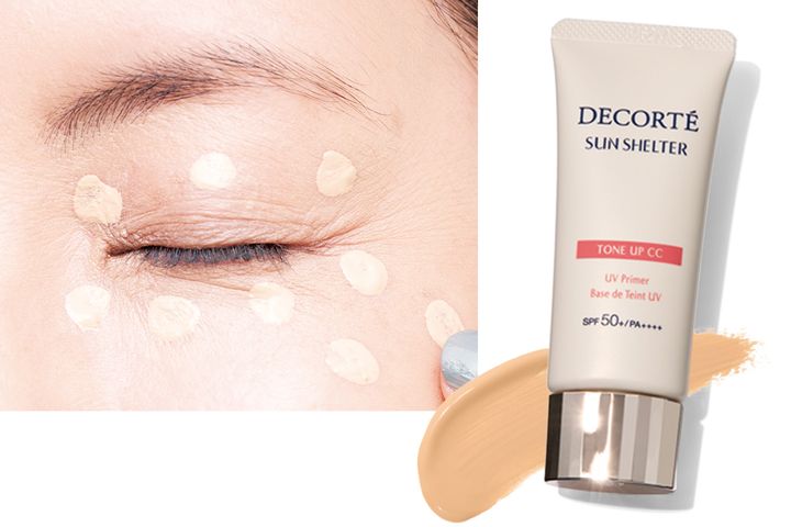 使用アイテム:潤いと明るさを叶える。サンシェルター マルチ プロテクション トーンアップCC SPF50+/PA++++ 35g ¥3,300(コスメデコルテ)