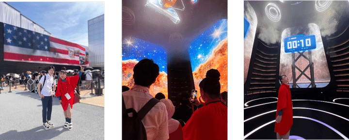 (実は生放送前に、アメリカ館へ訪れていた2人。テンションあがりすぎて、大はしゃぎ!)