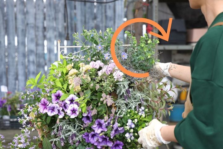 3. 丸く作るコツ&梅雨のお手入れ方法も紹介! ブルー&パープル系の大人可愛いハンギングバスケット
