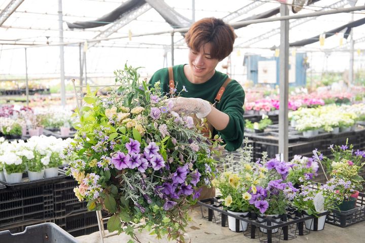 梅雨は雨で花が傷んだり、湿度が上がって株が蒸れやすくなるなど、ガーデニングでのトラブルが発生しやすくなる時期。そんな季節も華やかに植物を楽しみたい! という方にぴったりなのが、ハンギングバスケットです。空中に飾るので風通しよく蒸れにくい環境で育てられ、雨の日は軒下へ移動させるのも容易なため、花が傷むことも避けられます。今回は、横浜市でアイドル活動を行う傍らハンギングバスケット作りに励む戸田健太さんの制作に密着。ハンギングバスケット作りのポイントや、丸い形に仕上げるコツ、梅雨時期の管理方法などを分かりやすくご紹介します。