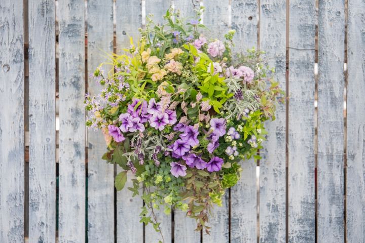 丸く作るコツ&梅雨のお手入れ方法も紹介! ブルー&パープル系の大人可愛いハンギングバスケット
