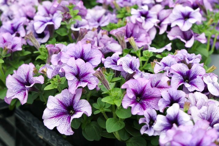 厳しい環境でも美しい花を咲かせ続ける高パフォーマンスな品種。コンパクトにまとまり、花径6~7cmほどの花を株いっぱいに咲かせます。花心から濃い網目模様が広がる立体感のある花は、ハンギングバスケットや寄せ植えのポイントに。ペチュニアは花1種で作るハンギングバスケットにも最適です。