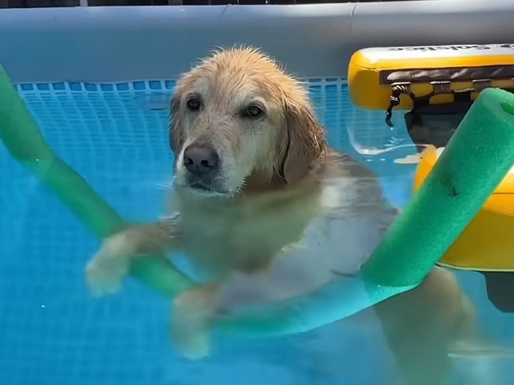 プールでのびのび遊ぶゴールデンレトリバーさん。