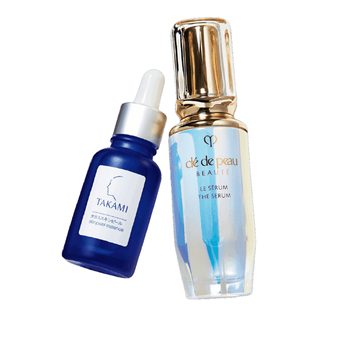 右から:ル・セラム Ⅱ 50mL ¥29,700(クレ・ド・ポー ボーテ)、 タカミスキンピール 30mL ¥5,500(タカミ)