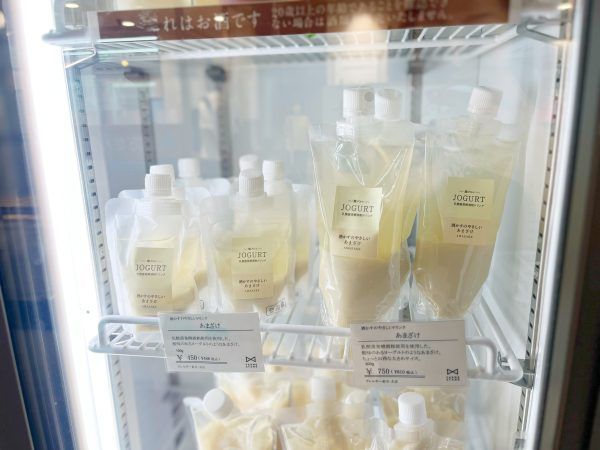お買い物がひと段落したら、「酒かすのやさしい発酵シェイク」や、「酒かすのやさしい甘酒ドリンク」で休憩はいかが。 販売もされている乳酸菌発酵甘酒を使っていて、ヨーグルトのような風味と味わいです。