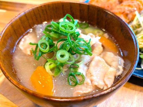 なんとぉ~!この日はお味噌汁が豚汁でした!なんてキレイな豚汁なんでしょう。麦味噌を使用されているので、旨味と甘味が調和された豊かな風味とまろやかな豚汁です。デザートのコーヒーゼリーもおいしかったです。大阪天満宮の裏通りにある確実に寄り道をしたくなるような酒場のランチでした。