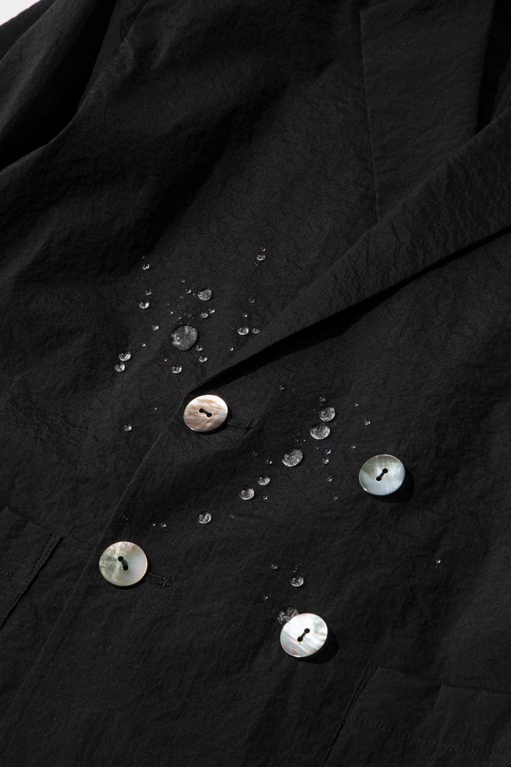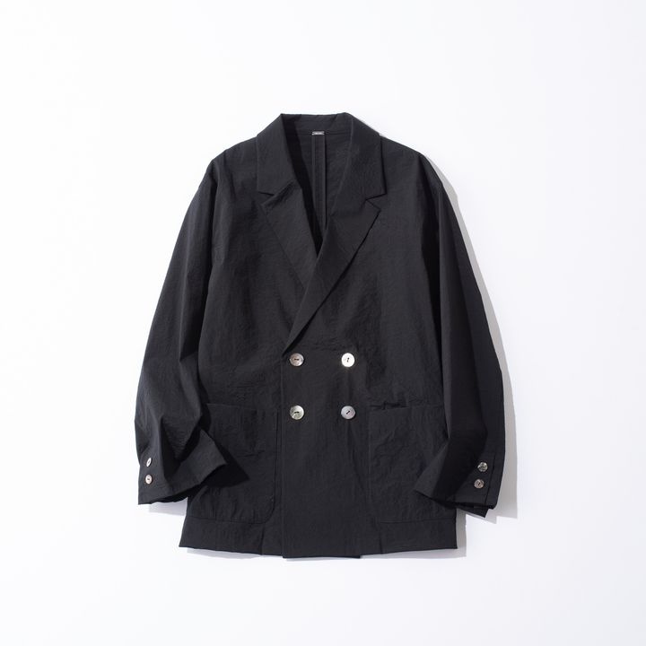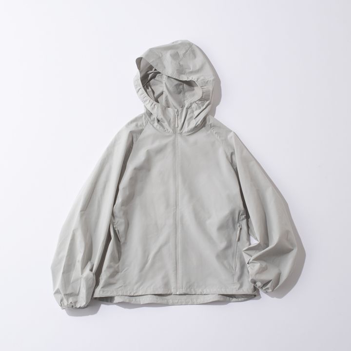 透け感がありながらも程よいハリのある素材感で、シルエットはややオーバーサイズ。味のあるシワがこなれた雰囲気を演出し、さらっと羽織るだけで抜け感を演出できる優秀な一着です。雨の日の通勤にも、晴れた日のアクティブな外出にも対応でき、どんなシーンでもコーディネートをワンランクアップしてくれる万能ジャケットです。