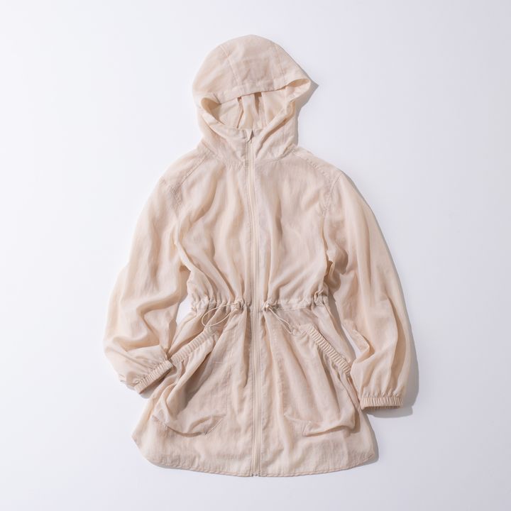 軽量なシアー素材を使用。撥水機能はもちろん有害な紫外線を90%以上カットできるUVカット機能付き。裏地がないので熱もこもらず涼しく快適に過ごせます。サイズ展開や色も豊富で長めなので気になるヒップを隠せるのも◎