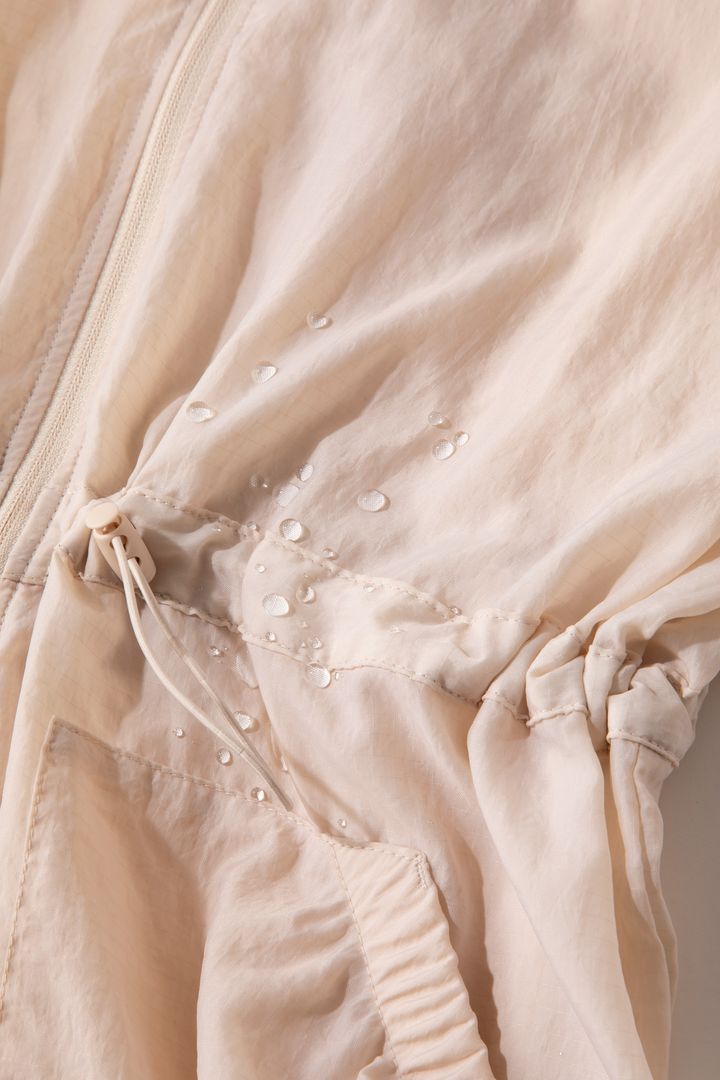撥水加工やUVカット機能付きで、天候の変わりやすい季節にも安心。さらに、真夏の冷房による冷え対策にも重宝し、肌寒さを感じたときにさっと羽織れるのも魅力。