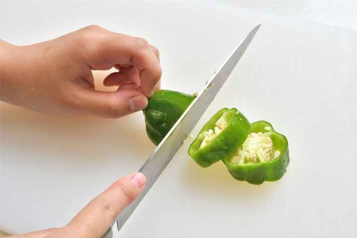 1. ピーマンを流水でよく洗い、食べやすいサイズにカットする。