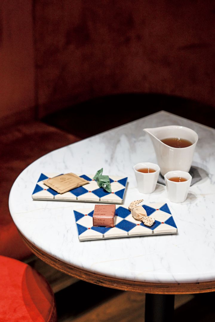 本を開いたような形が目を引くラングドシャは、軽やかな風味の高山(カオサン)烏龍茶と、発酵度が高めの東方(トンファン)美人茶にライチを組み合わせたものが人気。さらにナッツ入りのフルーツキャンディは、四季春茶に3種類のマンゴーを合わせ、ソフトな口当たり。洋菓子に合う台湾茶の茶葉も各種販売している。