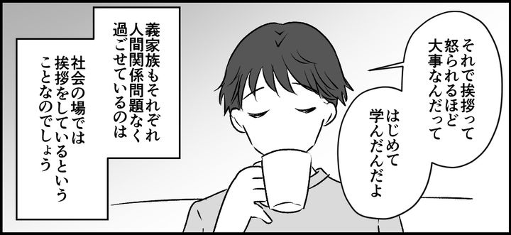 3. <義家族は挨拶しない!?>挨拶は基本じゃないの?夫と話して気づいた「価値観の違い」【まんが】