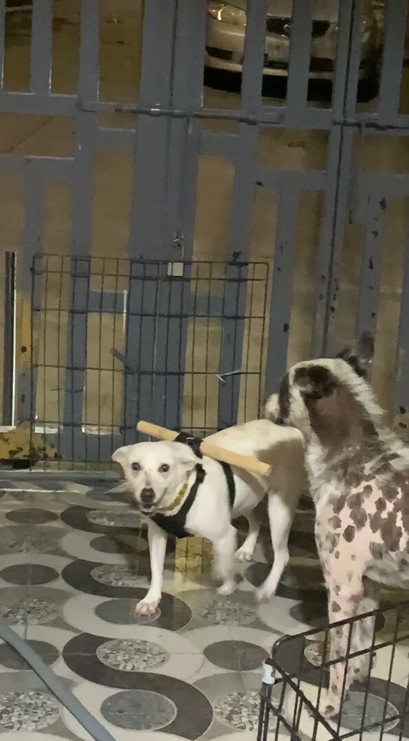 3. 超アナログだけど脱走防止に効果的!イヌの背中に括りつけられた棒!!【海外・動画】