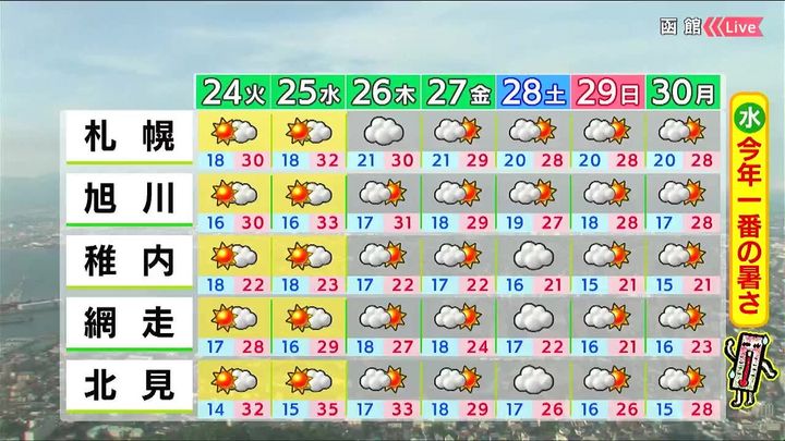 3. 【異例の暑さ】札幌はあす24日から3日連続で30度以上の真夏日…観測史上初 北海道の天気予報&気象予報士解説/2025年6月23日更新