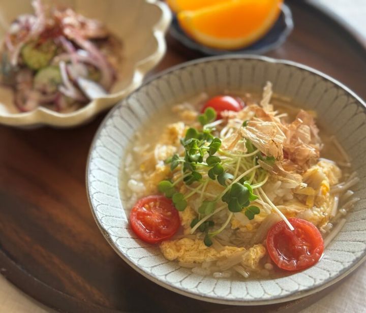 暑い日の胃腸に優しいごはん 「トマトと卵の雑炊」