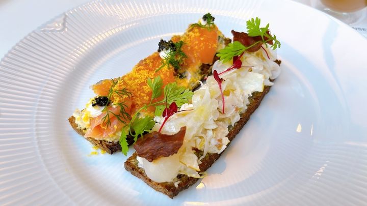 スモーブローはデンマークの伝統料理だそうで、ライ麦パンの上に様々な具材を乗せたオープンサンドのことみたいです。