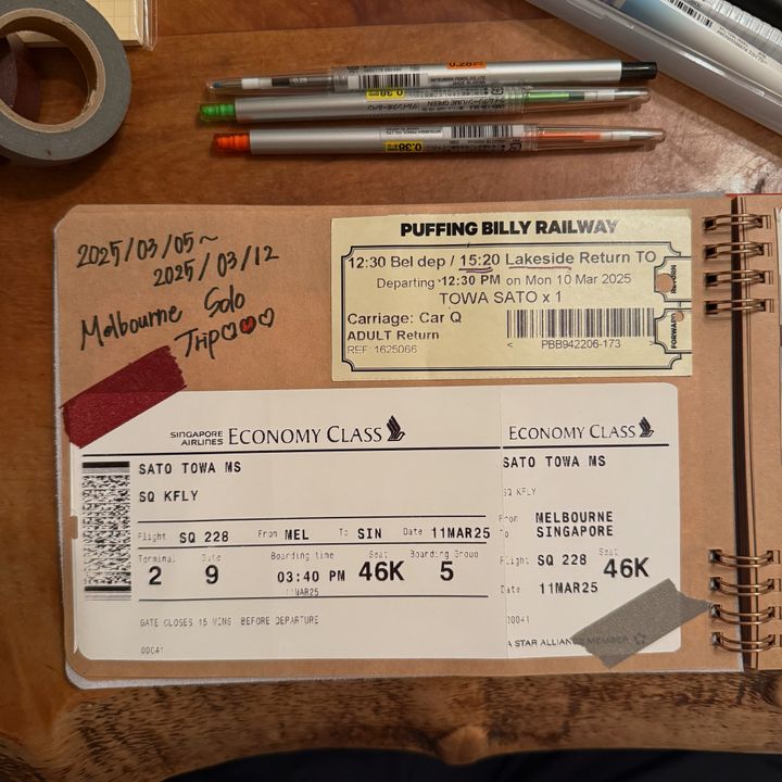 私は、海外旅行へ行った際の航空券や美術館博物館のチケット、世界各国の鉄道乗車券など、旅の思い出を貼っていくノートを作りました。