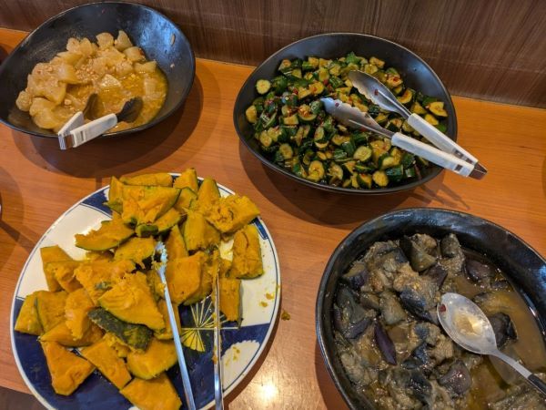 席に座ると、ご飯のサイズを聞かれ、お惣菜を取りに行くことを案内してくださります。向かった先にあったのは、期待を遥かに上回る惣菜の数々。これだけで食事が済むのでは?と思うくらいの充実した内容です。