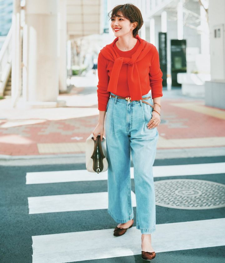 大好きデニムに【鮮やかな赤ニット】ONで自分らしさを発揮して