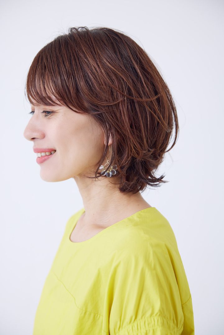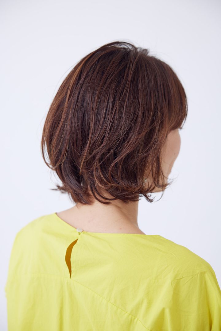 頭の形をきれいに、さらにペタ毛やハネるなどの髪質の悩みも払拭。それには何よりシルエットの美しさがモノを言います。トップの立ち上がり、後頭部の丸み、そして毛先にかけてのくびれ。黄金のひし形フォルムは若々しさも言うことなし!