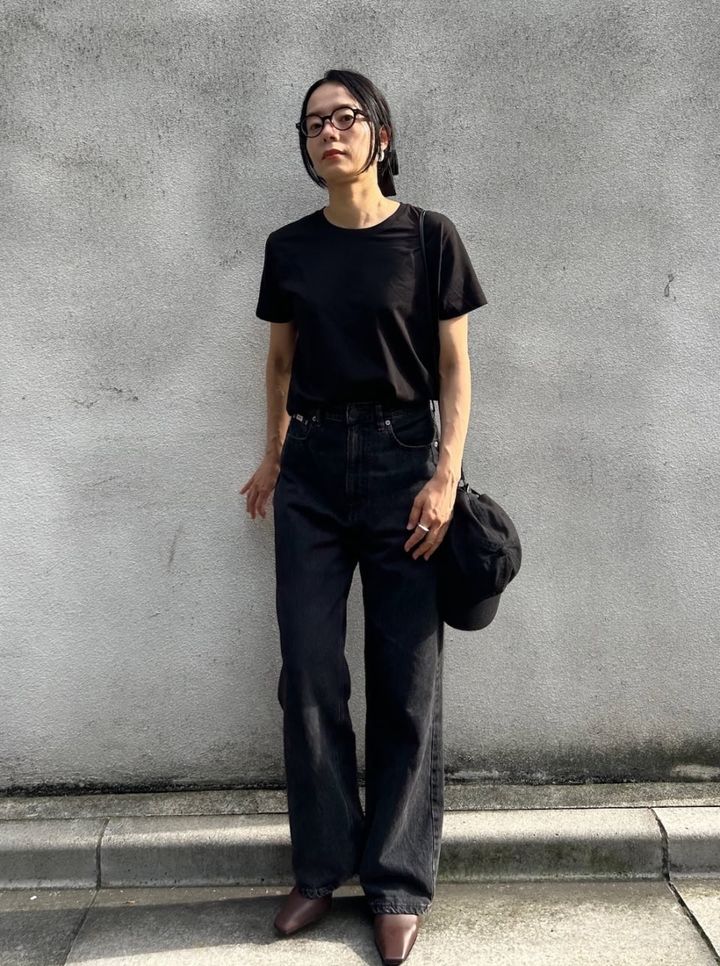 ラフなTシャツはオールブラックでシックにまとめると◎