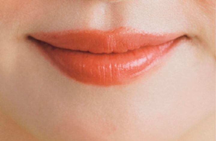 「洒落感がありつつ大人の唇の形をキレイに引き立て、肌色も冴えさせてくれるローズブラウンのリップ。上唇をオーバーめに塗って人中短縮すれば、よりフレッシュな印象に」