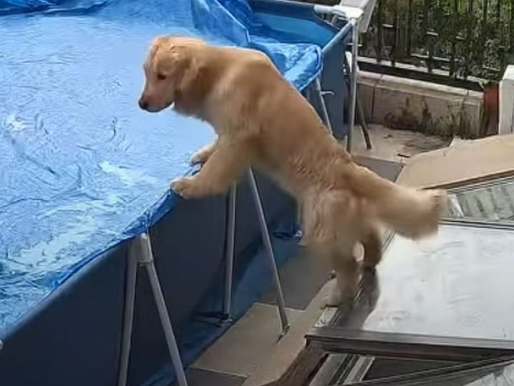 無邪気な犬さんのジャンプが招いたピンチ! 使用禁止のプールに入ろうとして