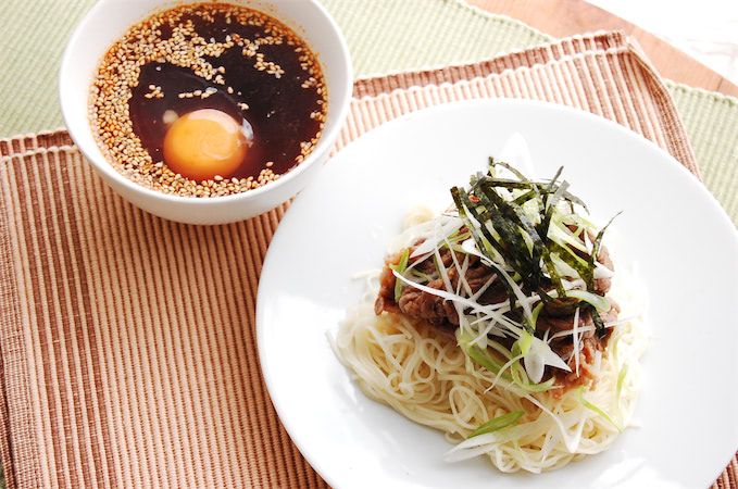 本日はその中から、暑い日にぴったりな「ラー油肉そうめん」を作ります。冷たいそうめんの上に甘辛く煮た牛肉をトッピングし、極薄に切った長ねぎをたっぷりのせ、ラー油をきかせためんつゆでいただくという、パンチのある“ごちそう“そうめんです。