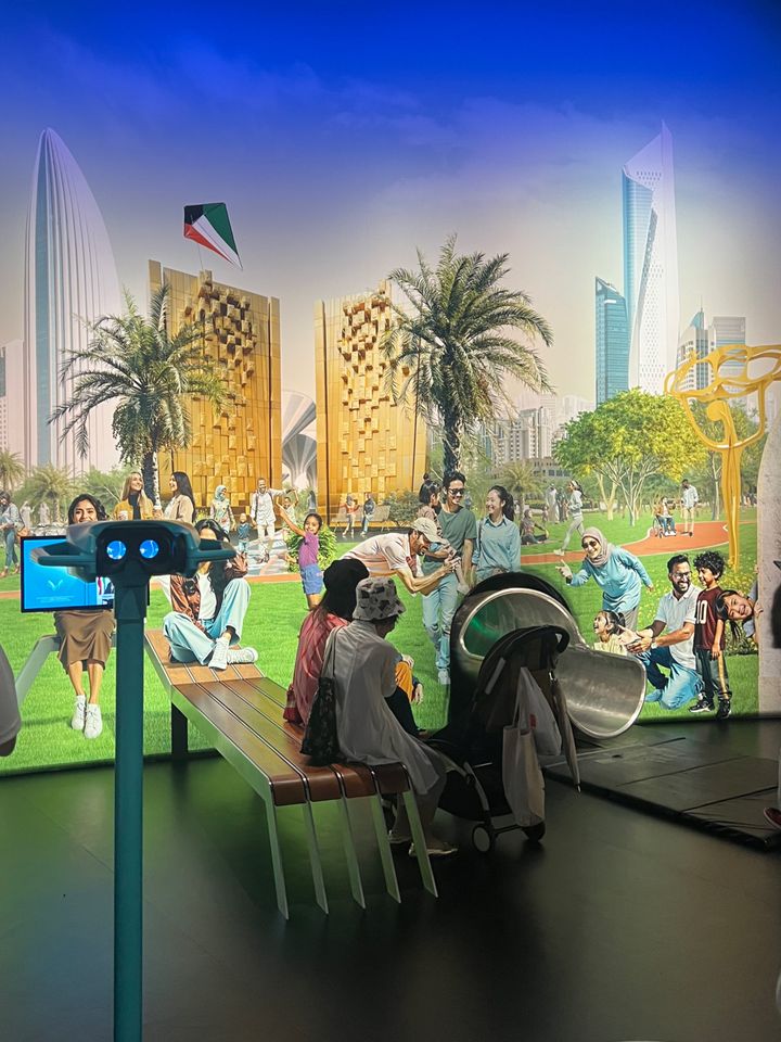砂場を経てクウェートの発展の歴史を眺めながら進んでいくと、奥にはクウェートの街並みが壁一面に!