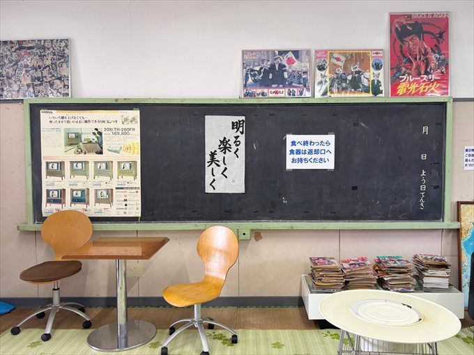 黒板の上には、習字の作品も。筆で書かれた文字を眺めていると、小学生のころを思い出す懐かしさがこみ上げてきます。