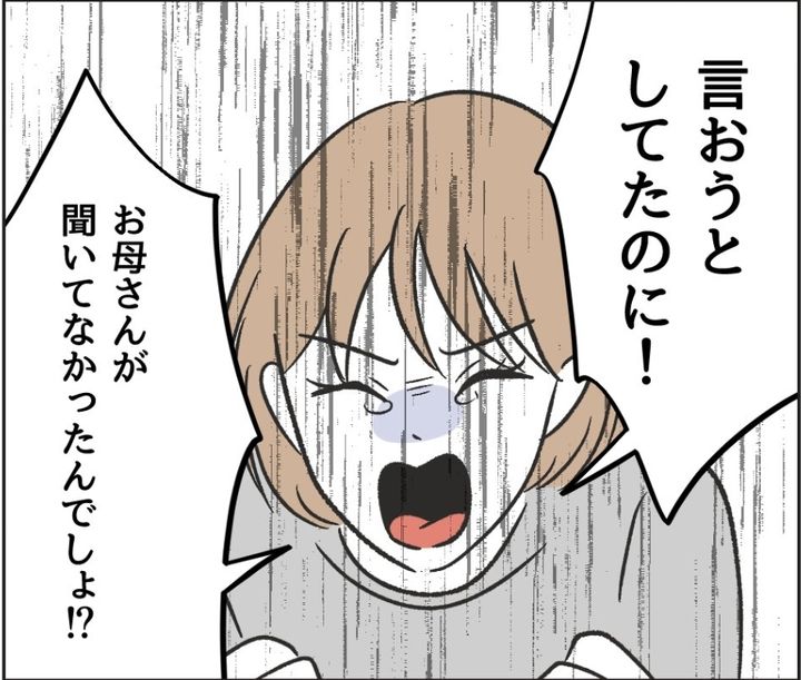 母の強引な行動に、思わず涙が溢れてしまったゆうこさん。これまでの母の言動を、たびたび我慢した結果なのでしょう…。ゆうこさんの涙の訴えに、母が見せたのはなんとーー「私が全部悪かった」と泣く姿。