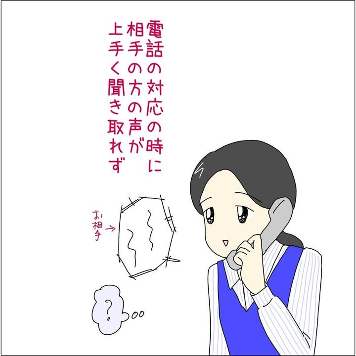電話応対中の女性。お客さんの声が上手く聞き取れなかったそうで…?