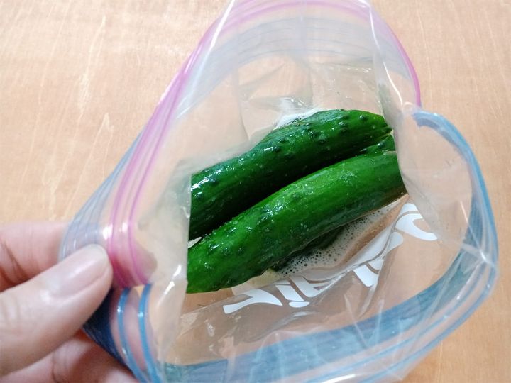朝に漬けて夜食べたい人は、きゅうりの両端を切り落とし、半分または食べやすい大きさに切って漬ければ時間短縮になります。