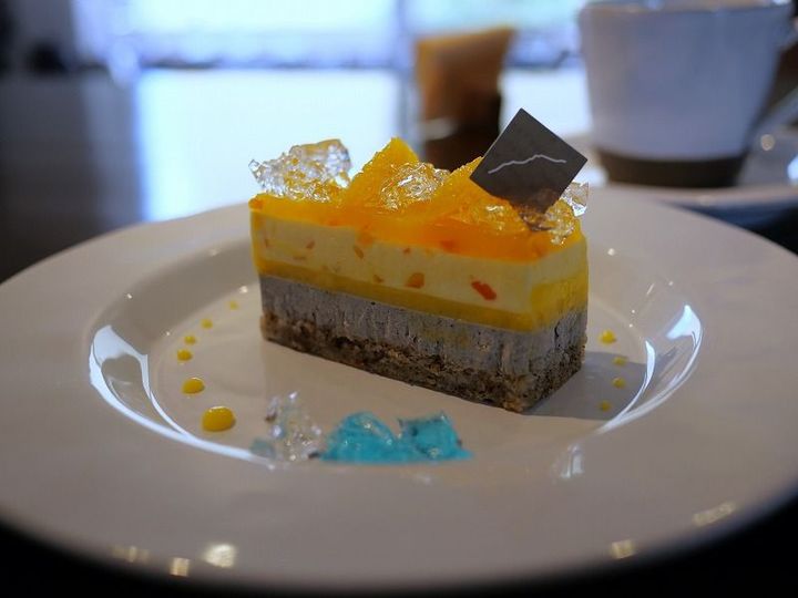 よく見ると、ケーキの下の層がゴマのムースで札幌軟石のようにデザインされているのです。