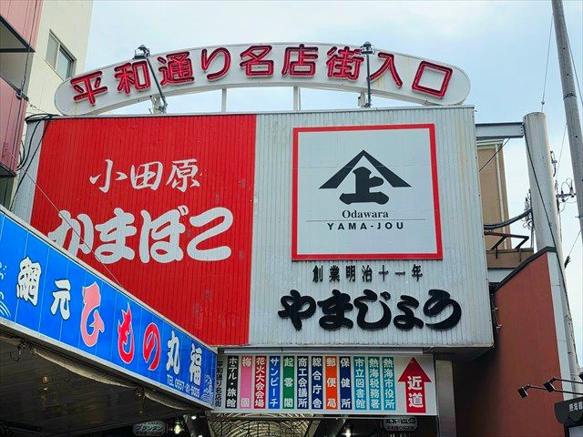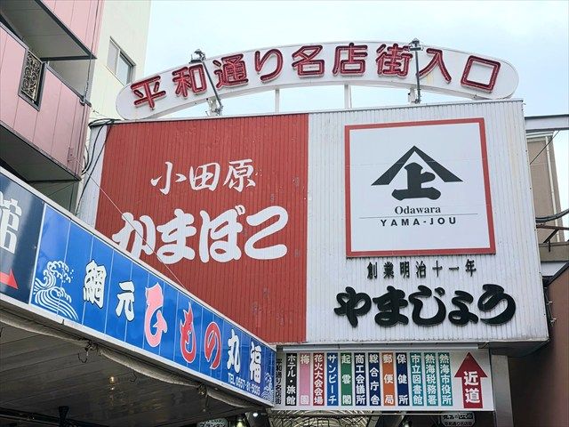 熱海で人気の観光スポットといえば、駅前に広がる2つの商店街、「平和通り商店街」と「仲見世商店街」。どちらもどこか懐かしいレトロな雰囲気が漂っていて、食べ歩きやお土産探しが楽しめる定番スポットです。