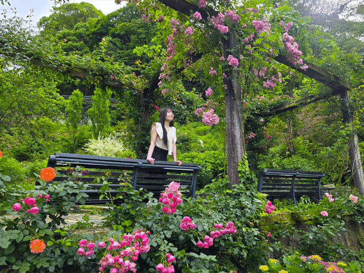 6月上旬に訪れた際には、園内のあちこちでバラが咲き誇り、とても美しかったです。一部の場所では、あじさいも咲いていて、彩り豊かな風景を楽しめました!