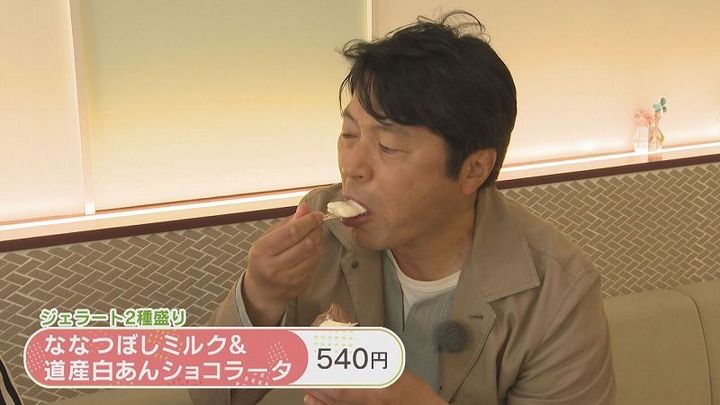 ジェラート2種盛り ななつぼしミルク&道産白あんショコラータ 540円