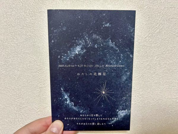 今回は大野城市在住のアーティスト田村奈々絵さんのご紹介です。 先日ご紹介した、大野城市にある「Botanical Clover」というアンティークショップの2階の貸しギャラリースペースで、田村さんの個展「わたしの北極星」が行われています。