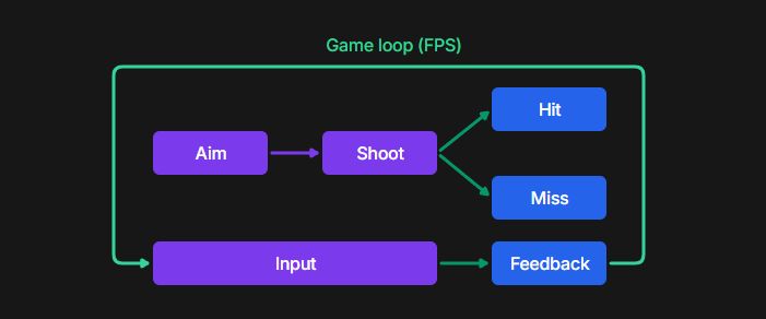 FPSゲームでは、照準を合わせ、弾を撃ち、当たるか外れるかという単純なループが何十回、何百回と繰り返され、そこに即時の視覚・聴覚フィードバック(効果音、敵の死亡アニメーション、ダメージ数値の表示など)が伴います。