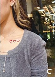デコルテに並んだ3つのハートでシンプルなアクセント。