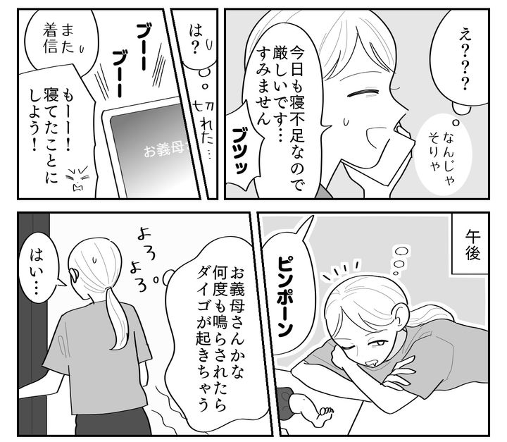 ただでさえ育児に追われて疲れている私。体力の余裕がありません。夜泣きでろくに寝られないのに義母の要求まで叶えるのはムリです。