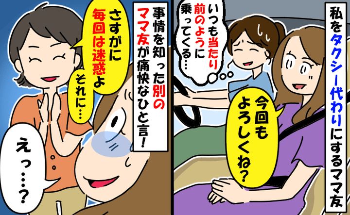 3歳の娘が通う幼稚園では、定期的にイベントが行われています。あるとき、Aちゃんママに車へ同乗しますかと声をかけたところ、何かあるにつれて毎回同乗しようとするようになったのです。さすがに困った私は、どのようにして断ろうかと困っていました。すると救世主が現れて……!?