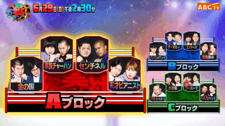 6月29日ごご2時30分から決勝が行われる「ABCお笑いグランプリ2025」。ファイナリスト12組のうち4組が登場するAブロックには、実力者がズラリ!