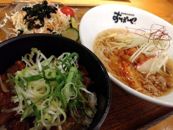 ランチの人気は、お得なおぼやセット!おぼ丼(焼肉丼)+ハーフ冷麺